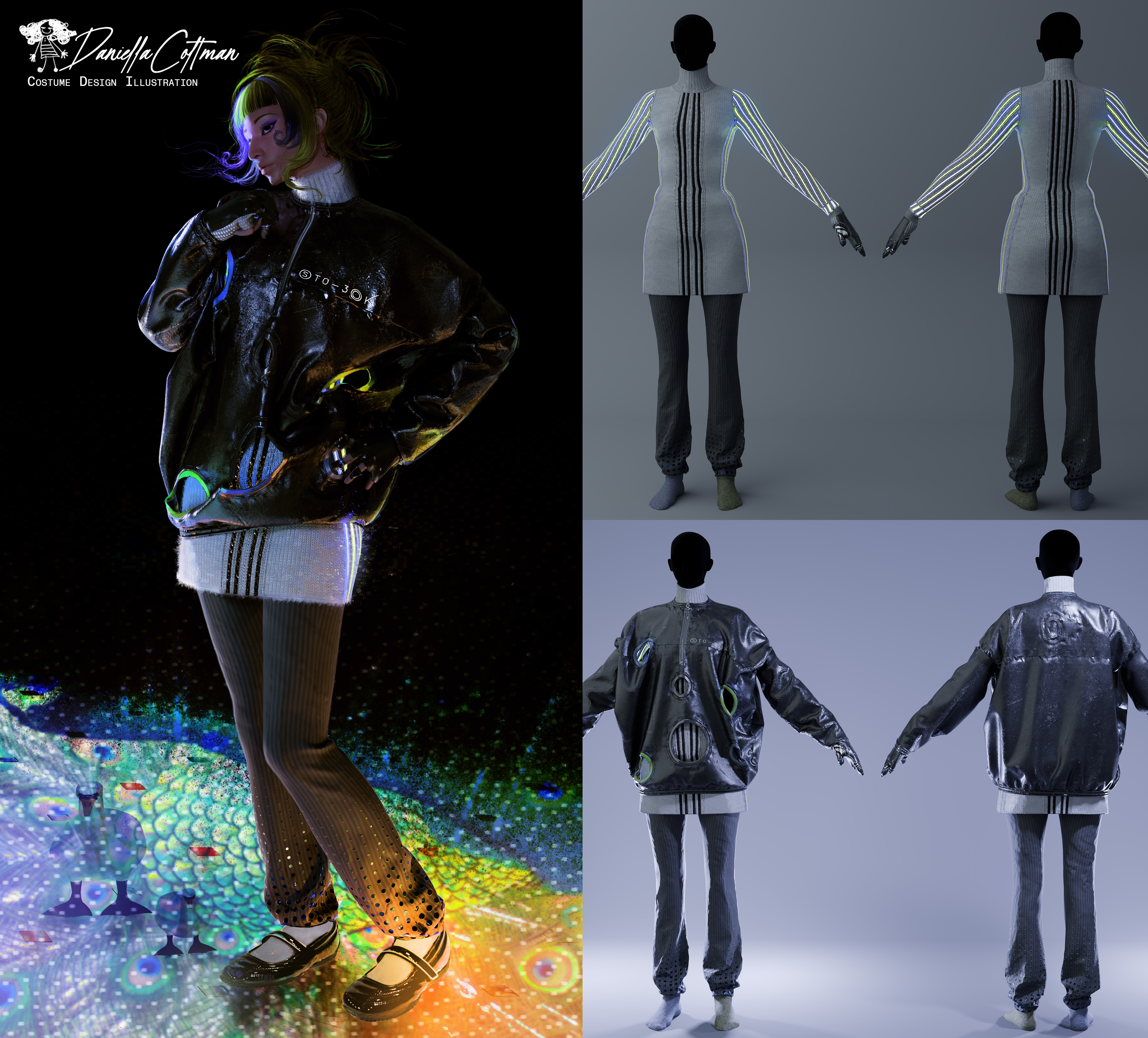 Garment Construction and Pattern Making done in Marvelous Designer. Materials done in Substance Painter & Blender.